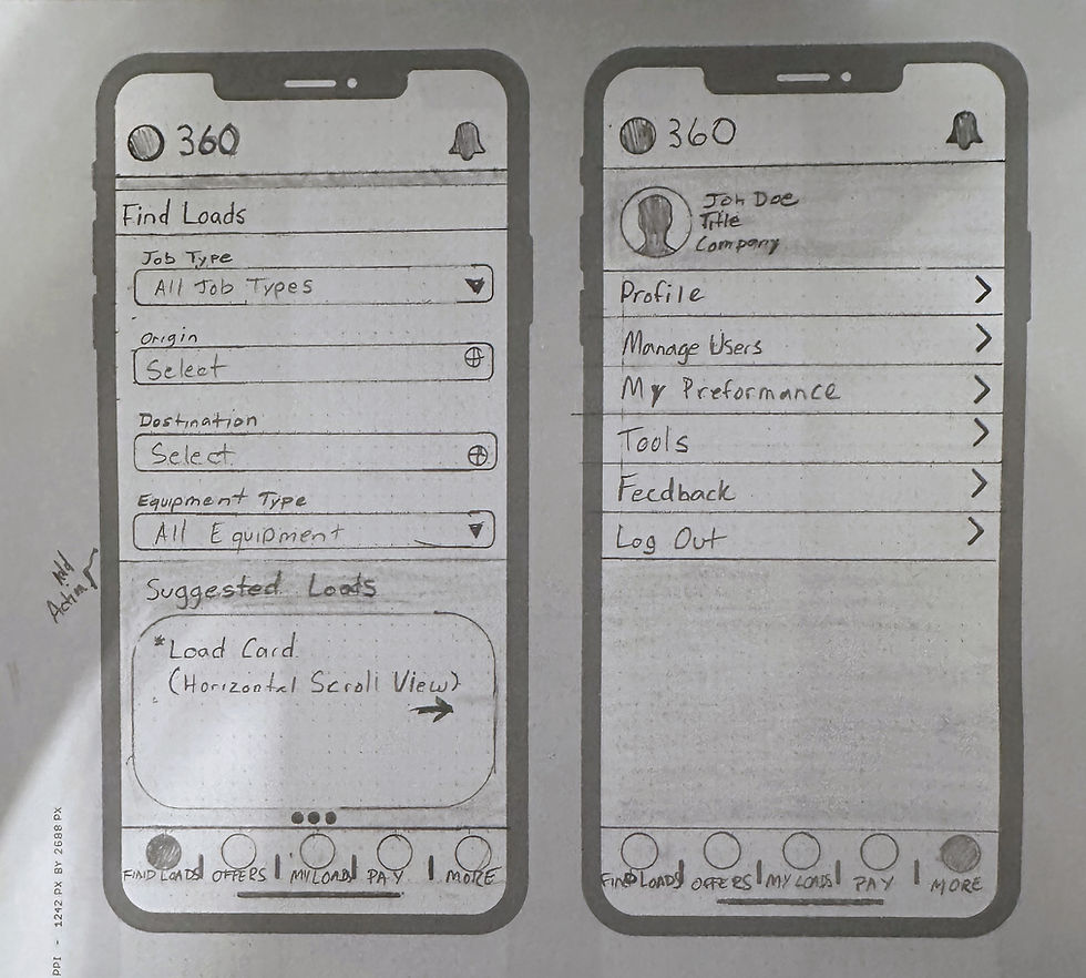 Users of the Carrier 360 application have a very specific goal in mind: Easily find, book, and execute loads. Not only is this the main goal of the users, but it's also a shared goal of J.B. Hunt as a business. Though various methods of research, we have found that over time past business and UX decisions have introduced speed bumps to this process. If we know as an organization that most of our users are in Carrier 360 to find loads, why would we ever land them on a home page with more than a dozen options to choose from? The cognitive load asked of our users in this scenery is unnecessary. The question quickly becomes how might we lower this cognitive load and how do we get users directly to what they want the most efficient way?